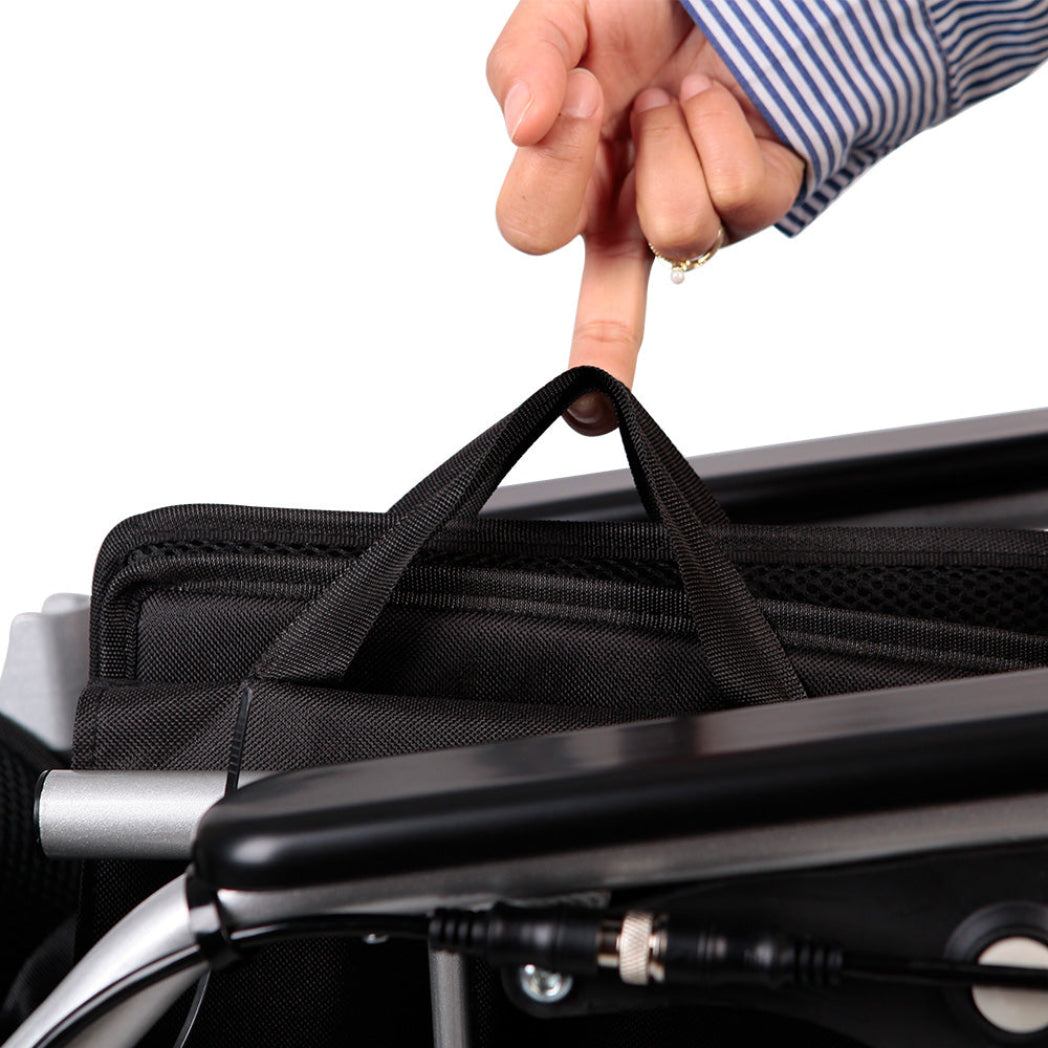 The chair is controlled with an easy-to-use joystick that can be placed on either the left or right hand side depending on the user’s preference. Alternatively, the controller can be mounted onto the handlebar to allow for carer or attendant control – an additional “carer-control bracket” will need to be purchased to make this possible.